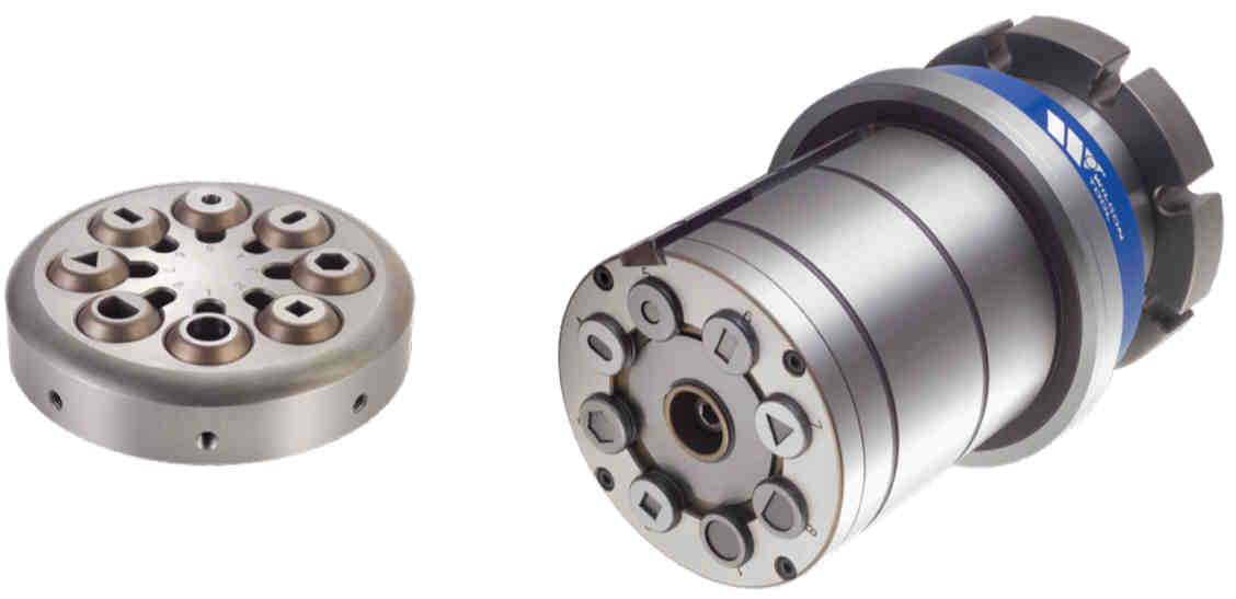 多子模有3、8和20子模,多子模可以增加转塔的模具数量,减少模具的调整时间,降低模具的使用成本,增加机器的灵活性。MT7是在一个工位上放7个A工位的冲头,减少了大量的模具调整时间,插入式的设计使更换非常方便。R系列的多子模,每个子模具可以当旋转模具来用,也就是说,使用了可旋转的多子模就相当于你的机床增加了旋转工位,扩展了机器的功能,降低了模具的使用成本。
